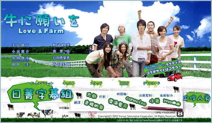[百度云/快传][TVBT日菁字幕组] 向牛许愿~Love&Farm [玉山鉄二/小出恵介/中田敦彦/相武紗季/香里奈/戸田恵梨香][繁体中文字幕][HDTV-RMVB][704*396版本]