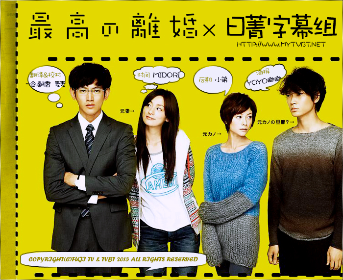 辛苦啦~话说冬季档好剧真心多啊~结束了多少有点寂寞啊~这季最完美的离婚,小原不哭,真幌站前番外地还有也行摩天轮必收啊~!!话说瑛太的剧都好精彩啊